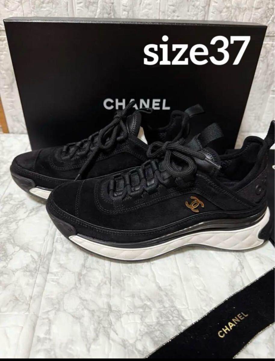 > 入手困難 CHANEL ゴールド ココマーク スニーカー ブラック スエード サイズ37