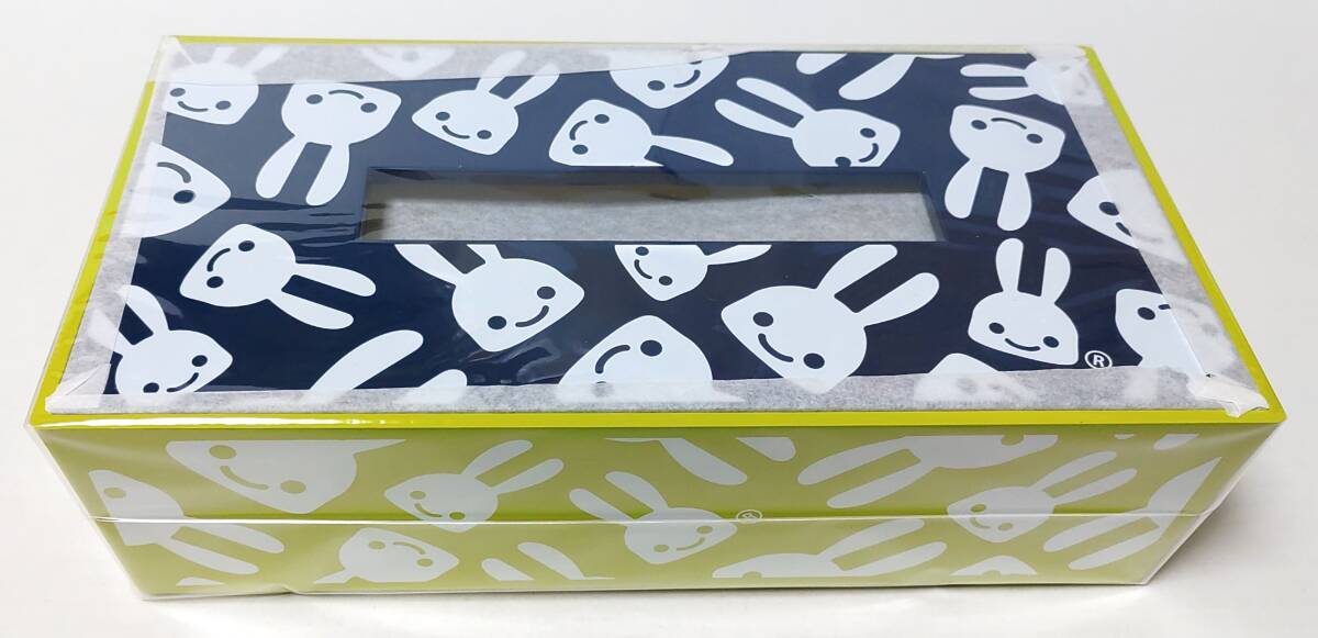 - 2024 日本製 CUNE『ティッシュボックスケース』NVY×LIM 5面プリント 総柄 CUNEウサギ 13.5×26×7.2cm 箱付き※未開封/未使用/タグ付き