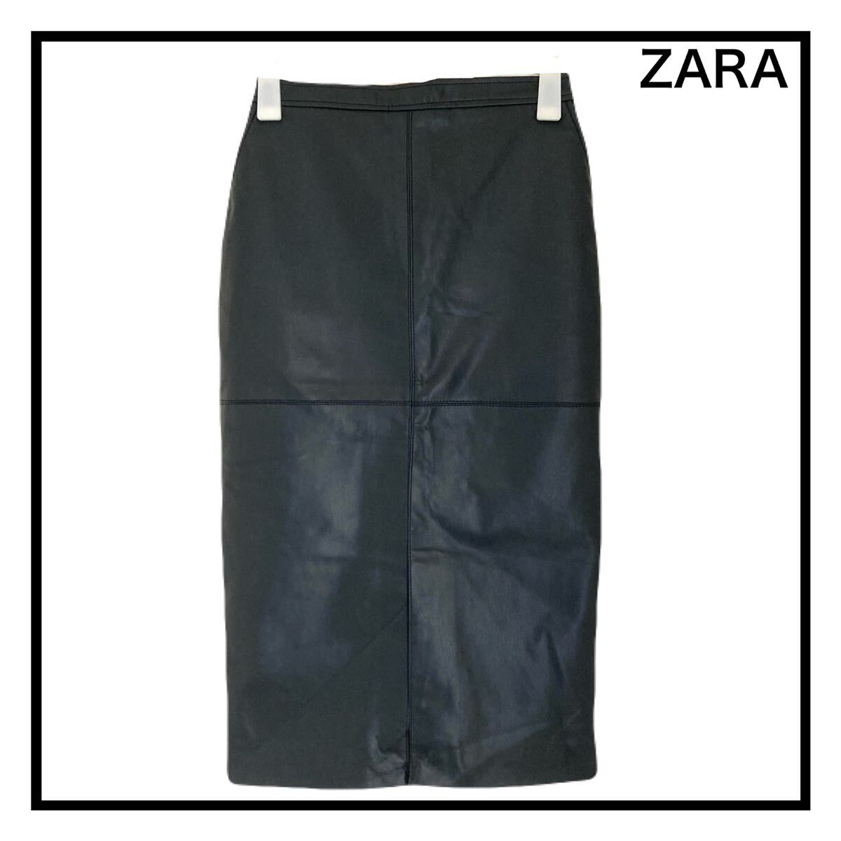 - ザラ フェイクレザー ロングスカート ミモレ丈 ブラック タイト 無地 XS