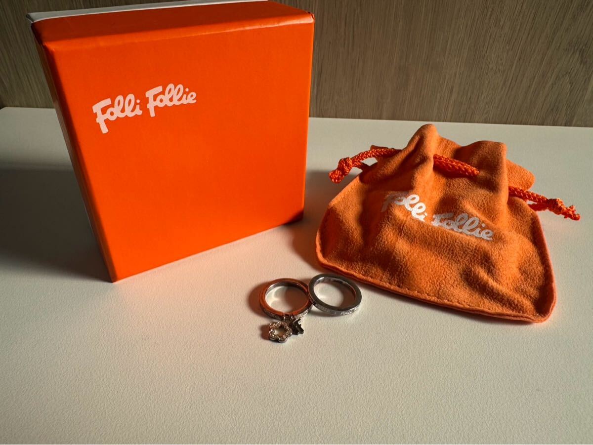 - 【中古品】Folli Follieフォリフォリ ビジュー チャーム付き リング & ブランドロゴ入り リング 2点セット 指輪11号 シルバー アクセサリー