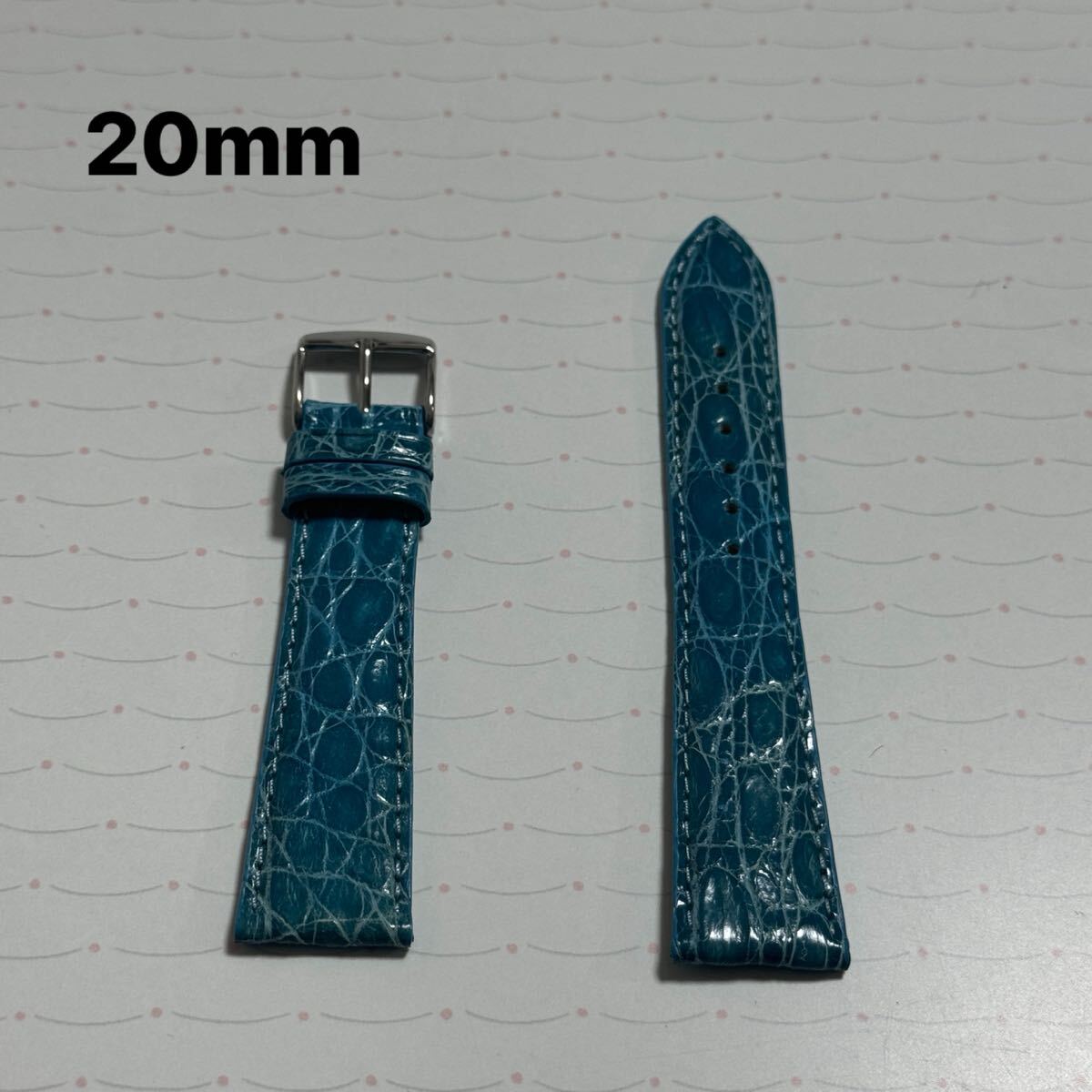 - 時計ベルト レザーベルト BAMBI バンビ 20mm SW0001U-S ワニ革 カイマン 替ベルト 交換ベルト 水色