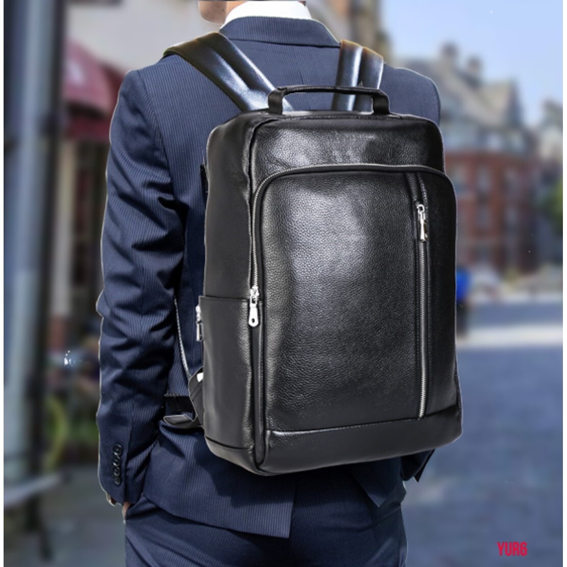 - 本革製 メンズ ビジネスリュック スクエア型 耐久性 高級感 15.6インチPC ブラック 機能的 サイドポケット A4サイズ 通勤 通学 普段使い