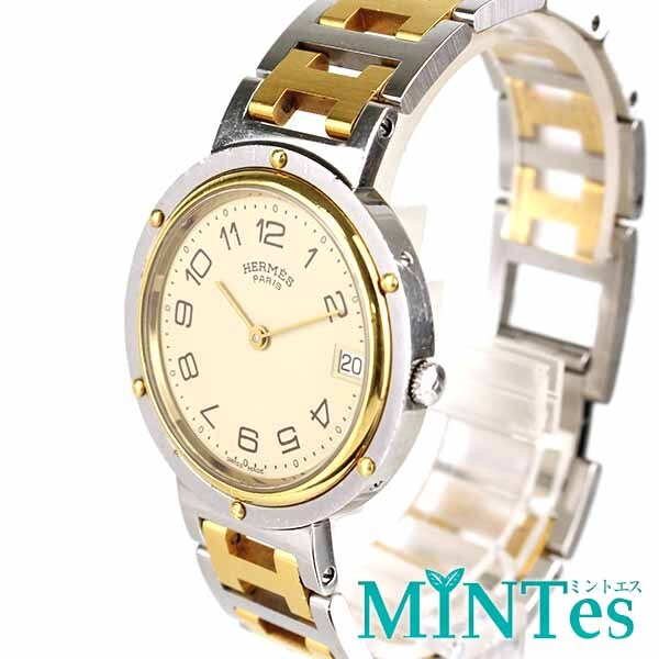 > Hermes エルメス CL6.720 クリッパー メンズ腕時計 クォーツ ゴールド×シルバー SS×GP ボーイズ デイリー 通勤通学 スタイリッシュ