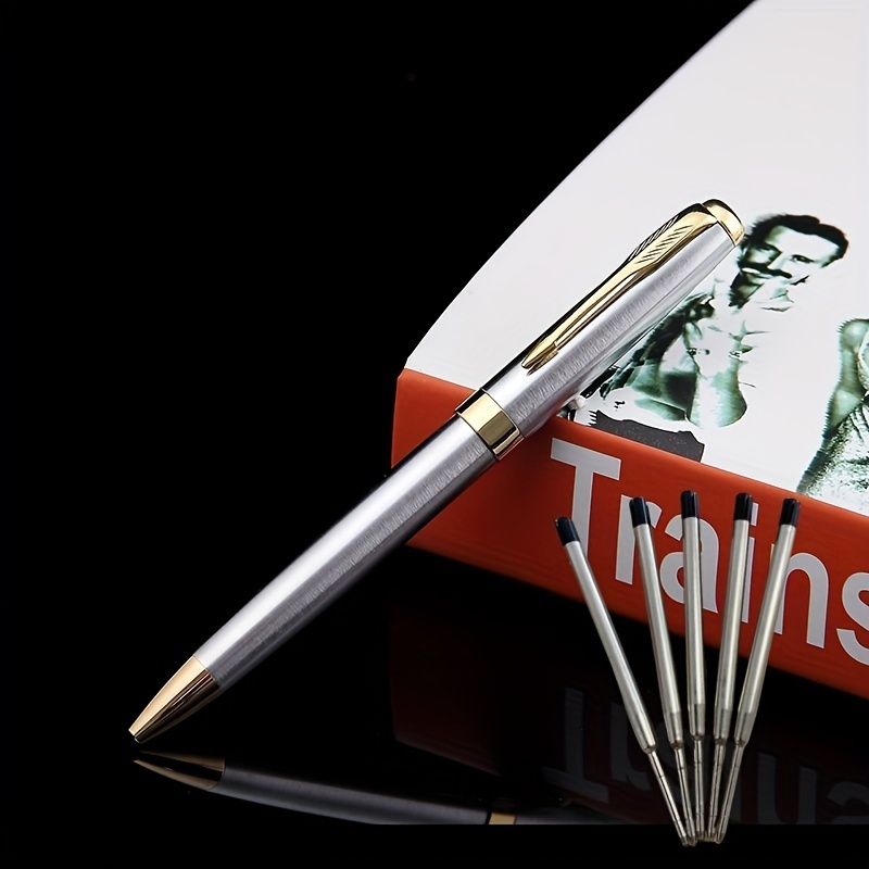 > ボールペン 高級感 おしゃれ 中字 黒ペン リフィル5本付き シルバー 金属 14cm ツイスト式 光沢 ギフト ビジネス 黒リフィル 仕事用 t5813