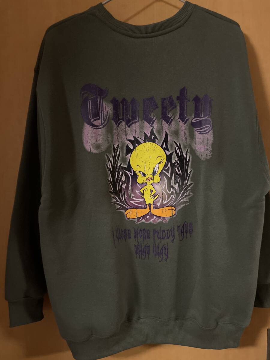 - 送料込み 新品未使用 M LOONEY TUNES ルーニーテューンズ トゥイーティー スウェット グリーン系 裏起毛 即決