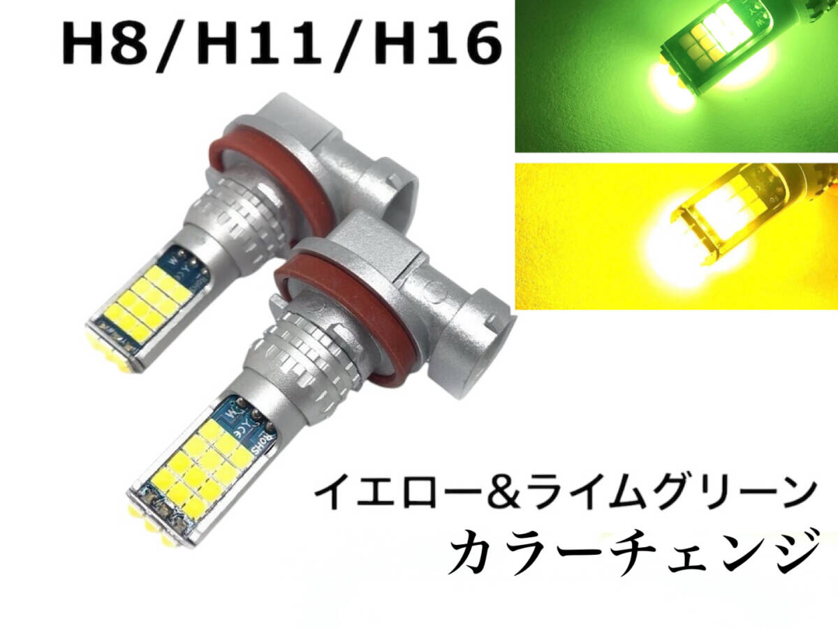 - 2色 切り替え H8 H11 H16 兼用 フォグランプ 交換球 LED ライムグリーン イエロー 左右2個セット アルファード プリウス セレナ