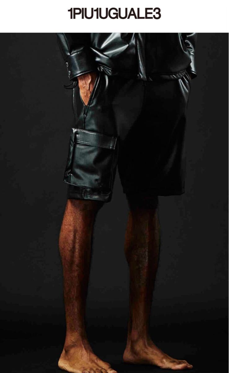 > 1piu1uguale3 113 SPORT PREMIUM SPORT LEATHER ONESIDE CARGO SHORTS ラグジュアリー ショーツ ショートパンツ 定価¥88,000