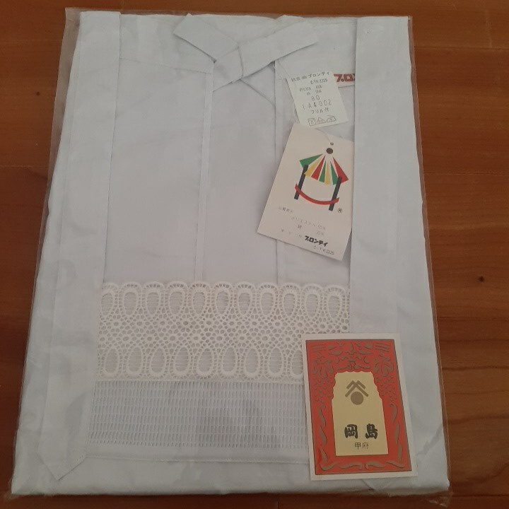- 新品 未使用 和装 かっぽう着 割烹着 白 丈80cm フリル付き プロンティ おしゃれエプロン 昭和 レトロ 送料無料 匿名配送