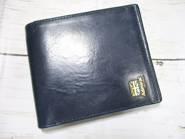 - 格安 セール 新品 財布 メンズ 二つ折り アドミラル ブランド 本革 最高級 天然レザー バイカラー ネイビー !