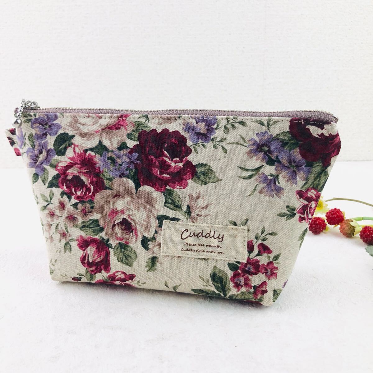 - アンティーク ローズ ファスナーポーチ ハンドメイド ポーチ コスメポーチ 小物入れ 薔薇 ローズ柄