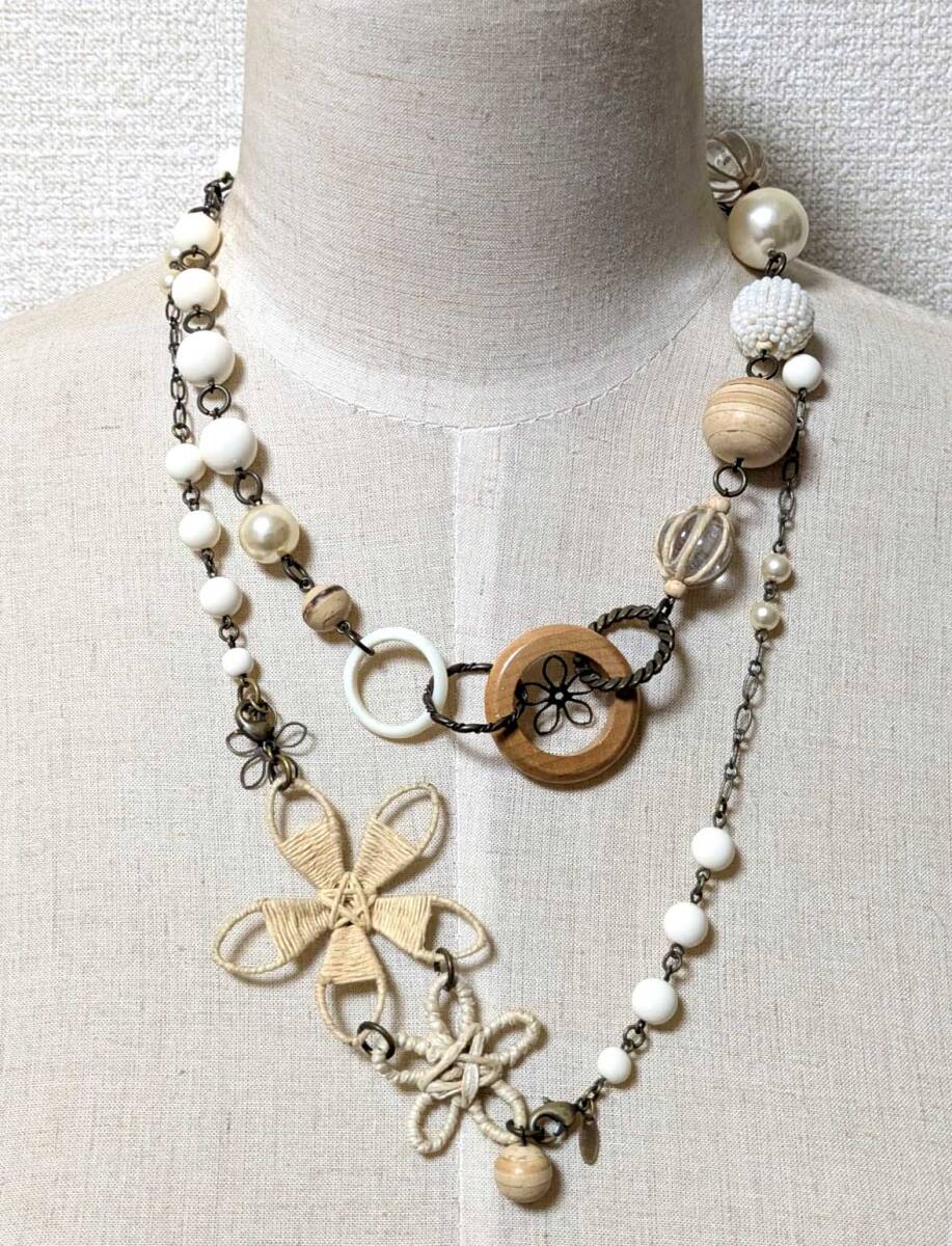 - ■gen_011 旧家蔵出し ★ お洒落な 民族調 エスニック ロング ネックレス ペンダント 二連