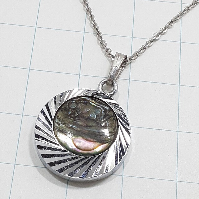 - 送料無料)ビンテージ☆アバロンシェル☆約45cm☆アンティークネックレス ペンダント A29098