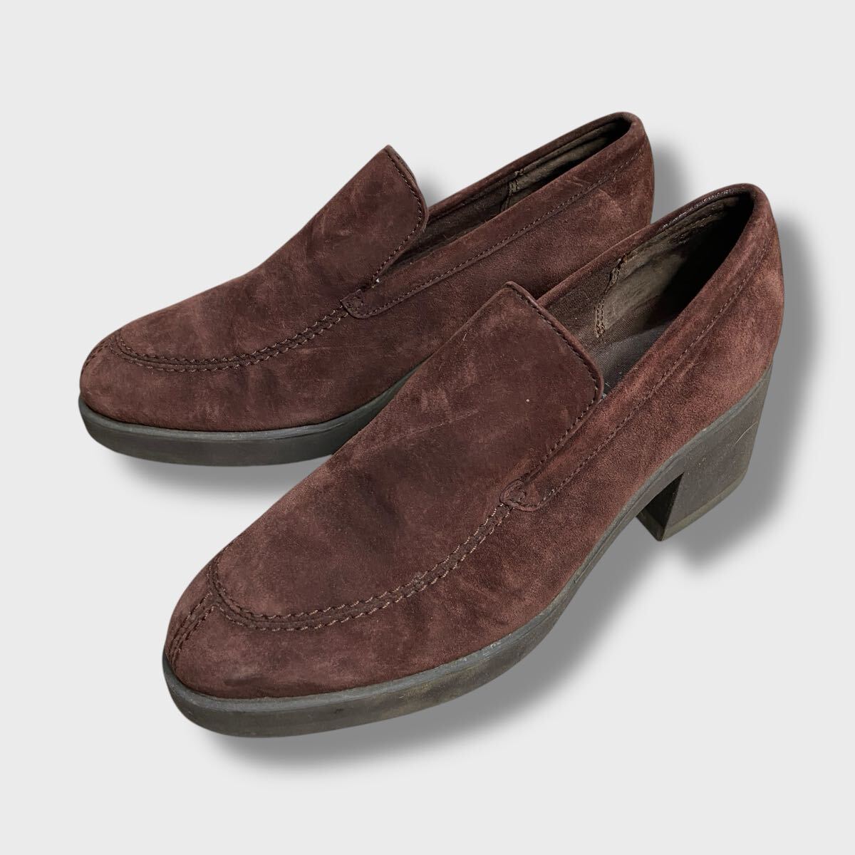 - 送料無料☆ハッシュパピー☆HUSH PUPPIES☆ブラウンスエードヒールローファー☆US6☆23cm☆D24M