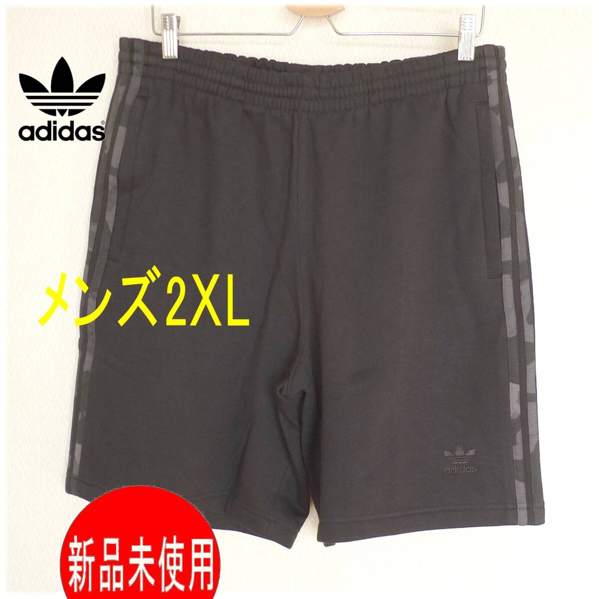 > 定価8470円大きいサイズ(2XL)アディダス adidas 黒 カモ柄3st メンズハーフパンツ 裏起毛 ジップ付きポケット