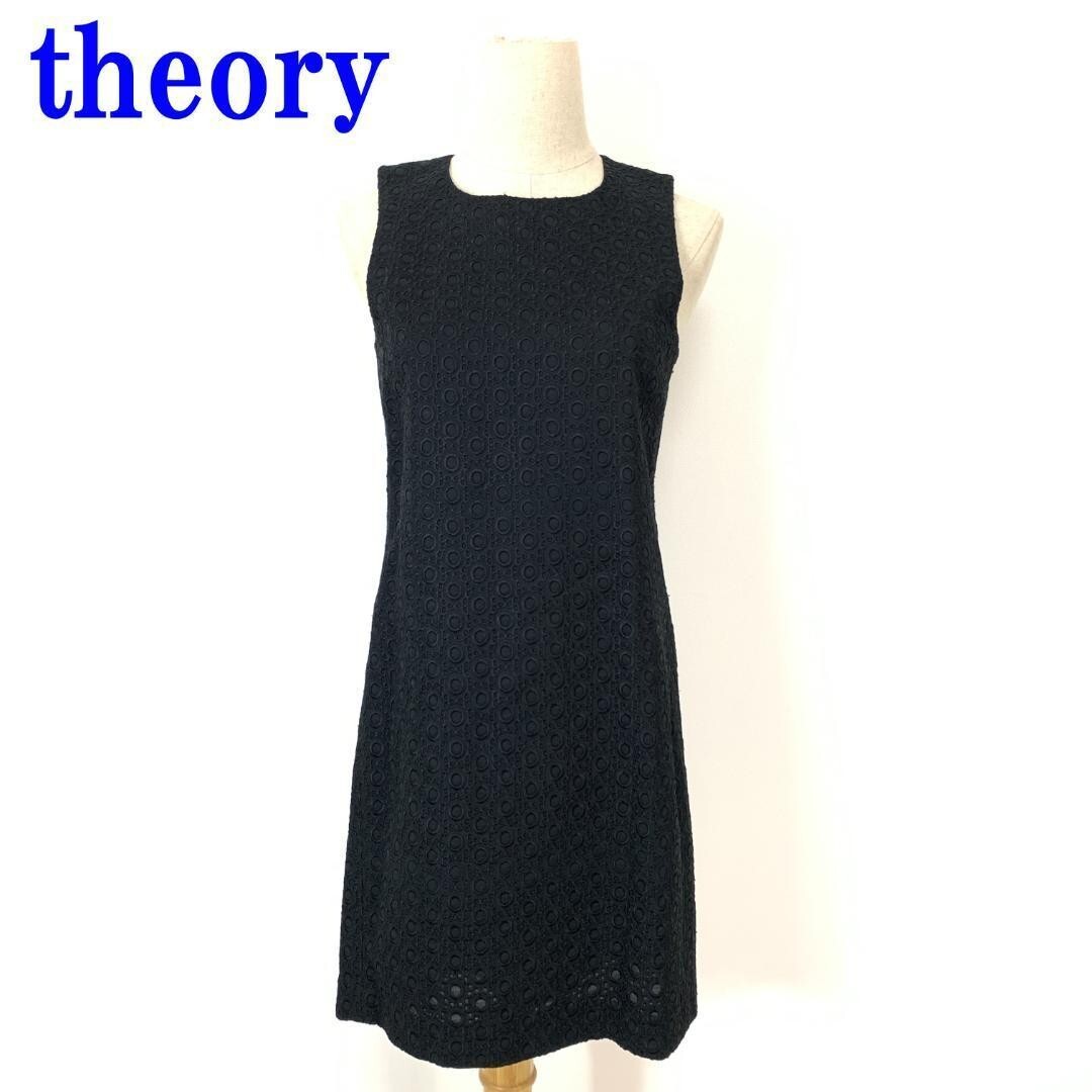 - セオリー ノースリーブワンピース 黒 ウール レースtheory ブラック 総レース 背中ゴム 2 C2461