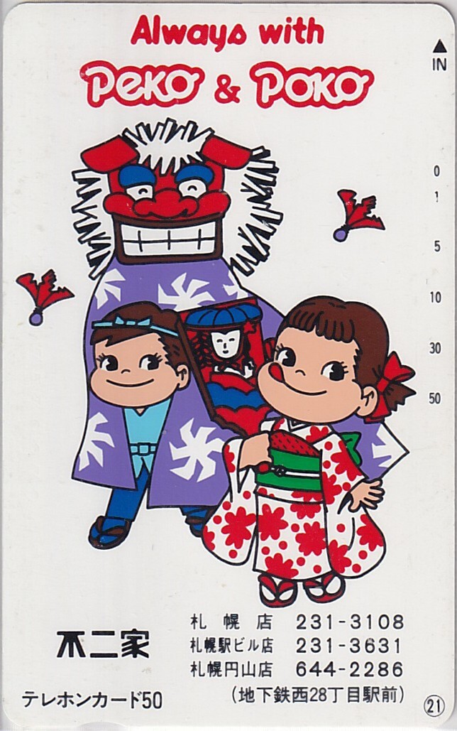 - =不二家 ペコちゃん= 「3店舗限定 NO.23」販売テレカ #w