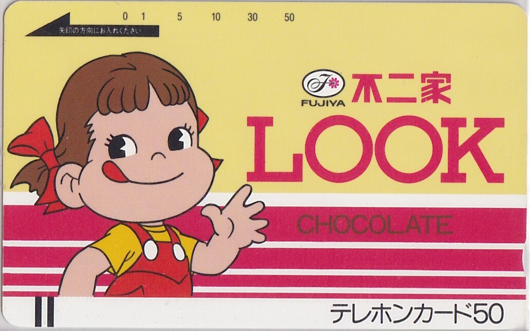 - =不二家 ペコちゃん= 「LOOKチョコレート」販促テレカ #15749