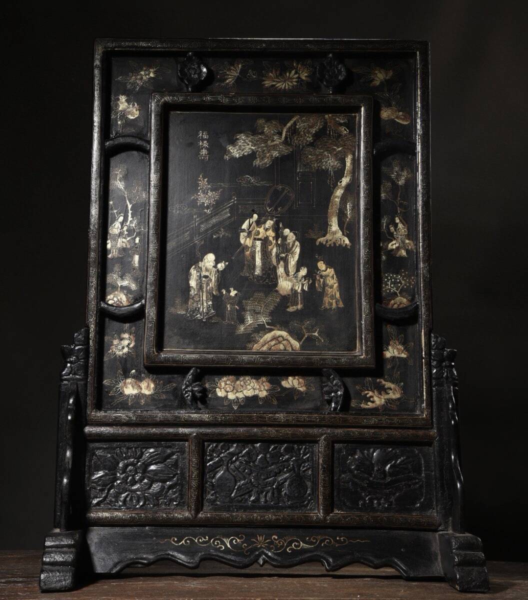 - 唐物 清 大判老木胎 真金漆器 福禄寿図 屏風 中国美術品 時代物 D64