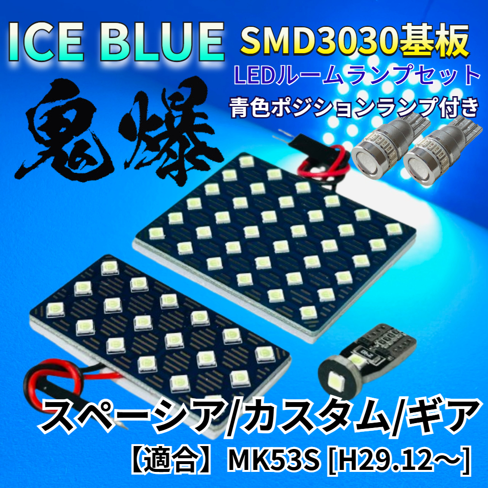 - 【アイスブルー】スペーシア/スペーシアカスタム/スペーシアギア MK53S 鬼爆基板 3030SMD LED ルームランプ スモールランプ セット 車内灯