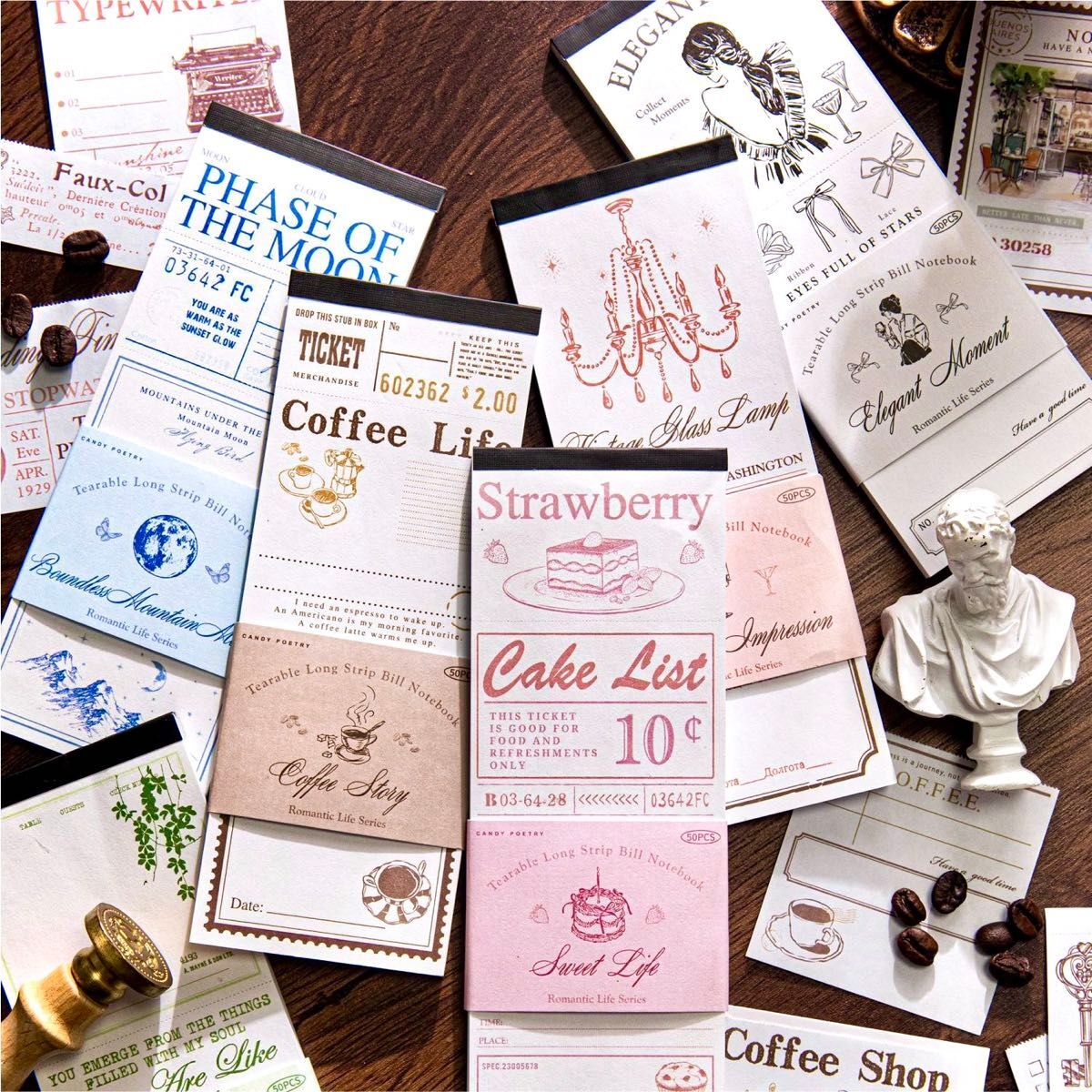 - チケットシリーズ⑩ 6種300枚 切取線 票券風 素材紙 苺 デザート 喫茶 シャンデリア 雑貨 ロゴ メモ 装飾 コラージュ