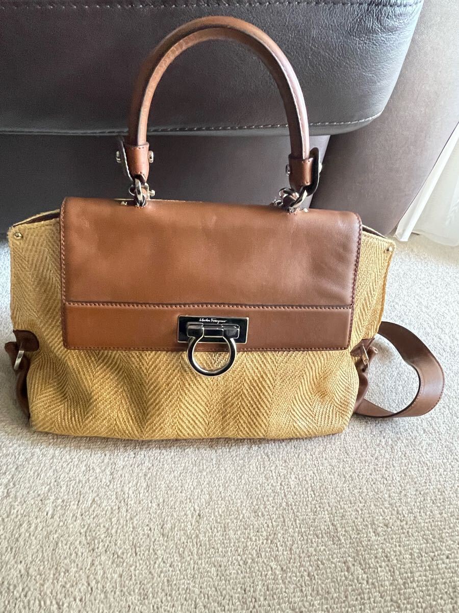 - フェラガモ ガンチーニ ソフィア バッグ 2way ラフィア レザー