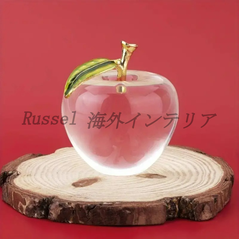 > オブジェ 置物 クリスタル アップル ペーパーウェイト クリア アートガラス アップルコレクション かわいい 果物 お洒落 シンプル 4-7