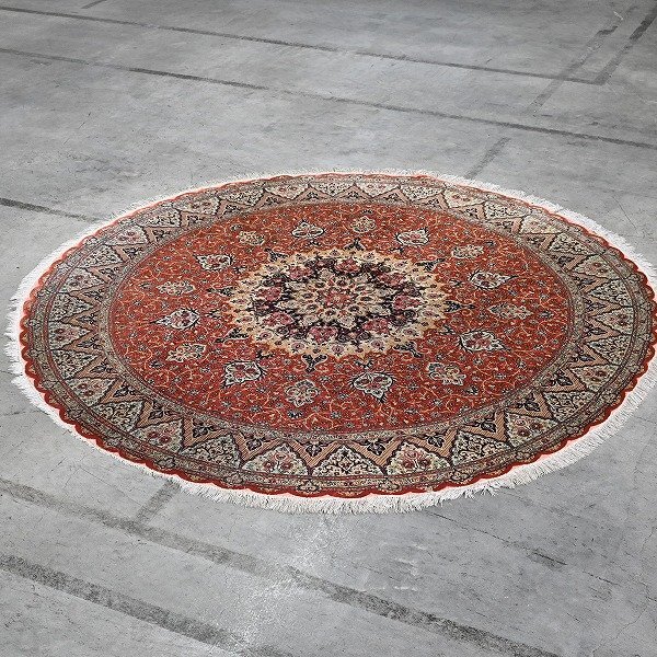 - 最高傑作 クム産 ペルシャ絨毯 シルク 手織り ラグ 円 メダリオン 大判 アンティーク リビング ダイニング 寝室 書斎 客間 応接室