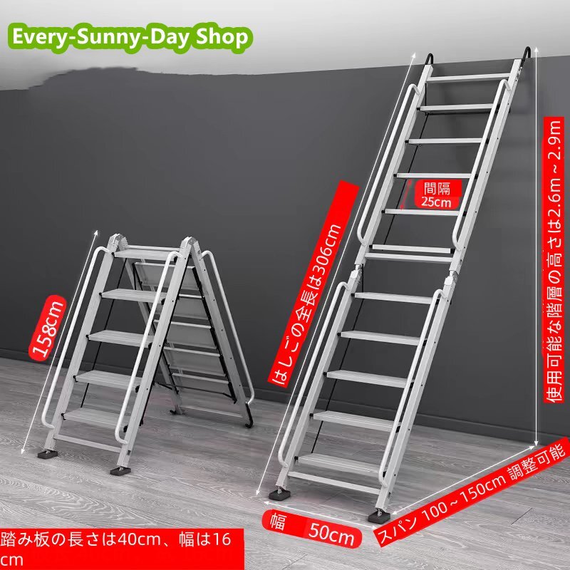 - はしご 屋内折りたたみ 収納便利 ロフトラダー バルコニー 階段 、 ストレッチ アームレスト はしごを登る エスカレーター10 Steps