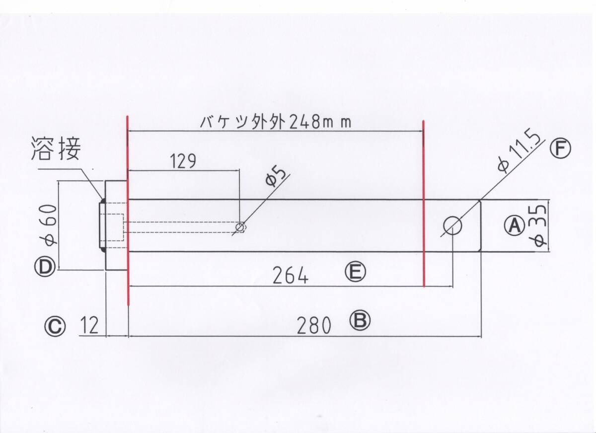 - NO 2020 φ35用 溶接ツバ下280mm グリス穴付きバケットピン1本/ストッパーカラー1個 重機用