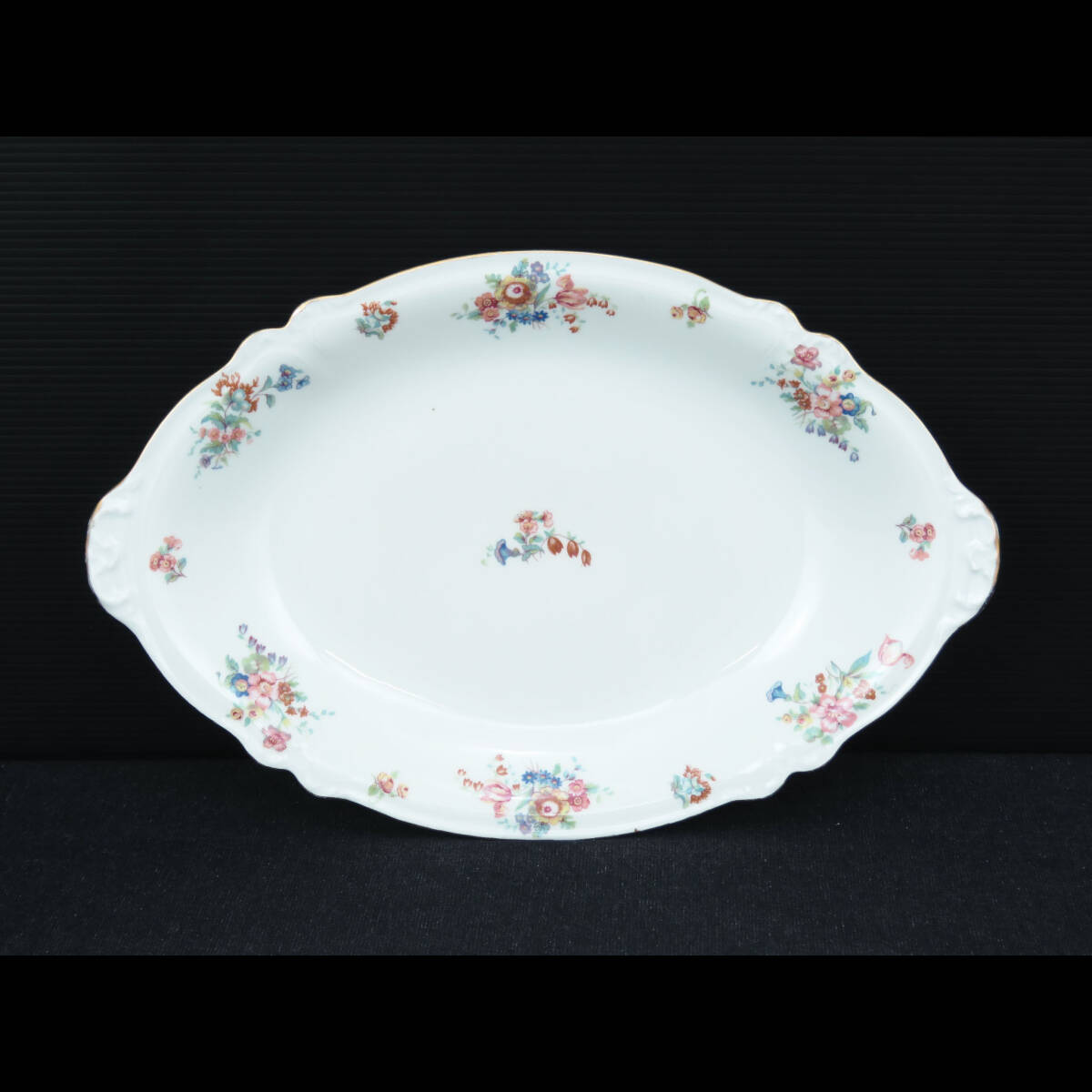 > リモージュ(Limoges)磁器のオーバルの大皿/BALLEROY FRERES/洋食器/手描き花/フラワー/西洋骨董/フランスのアンティーク雑貨/AL-2423-1