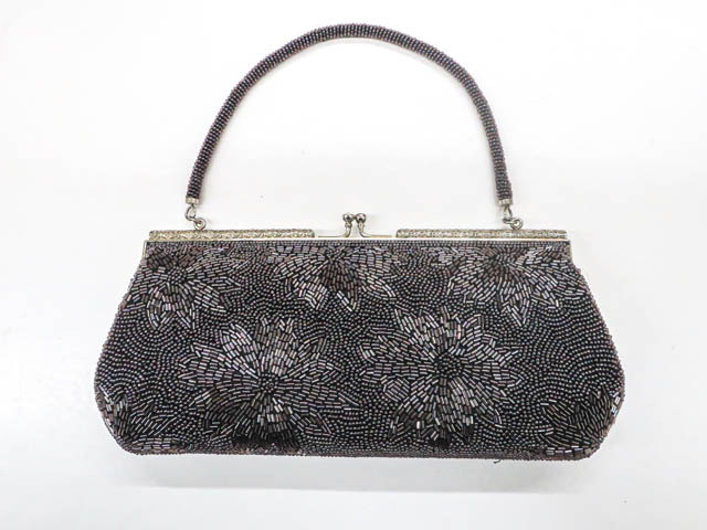 - 《古美術京松》【着物】 アンティーク 和装小物 ビーズバッグ 花文 r7w02-278