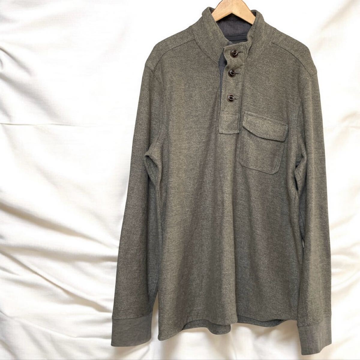 - 美品 エディーバウアー スタンドカラー 長袖 ヘンリーネック ポロシャツ ブラウン Eddie Bauer ロングスリーブ オーバーシルエット Tシャツ