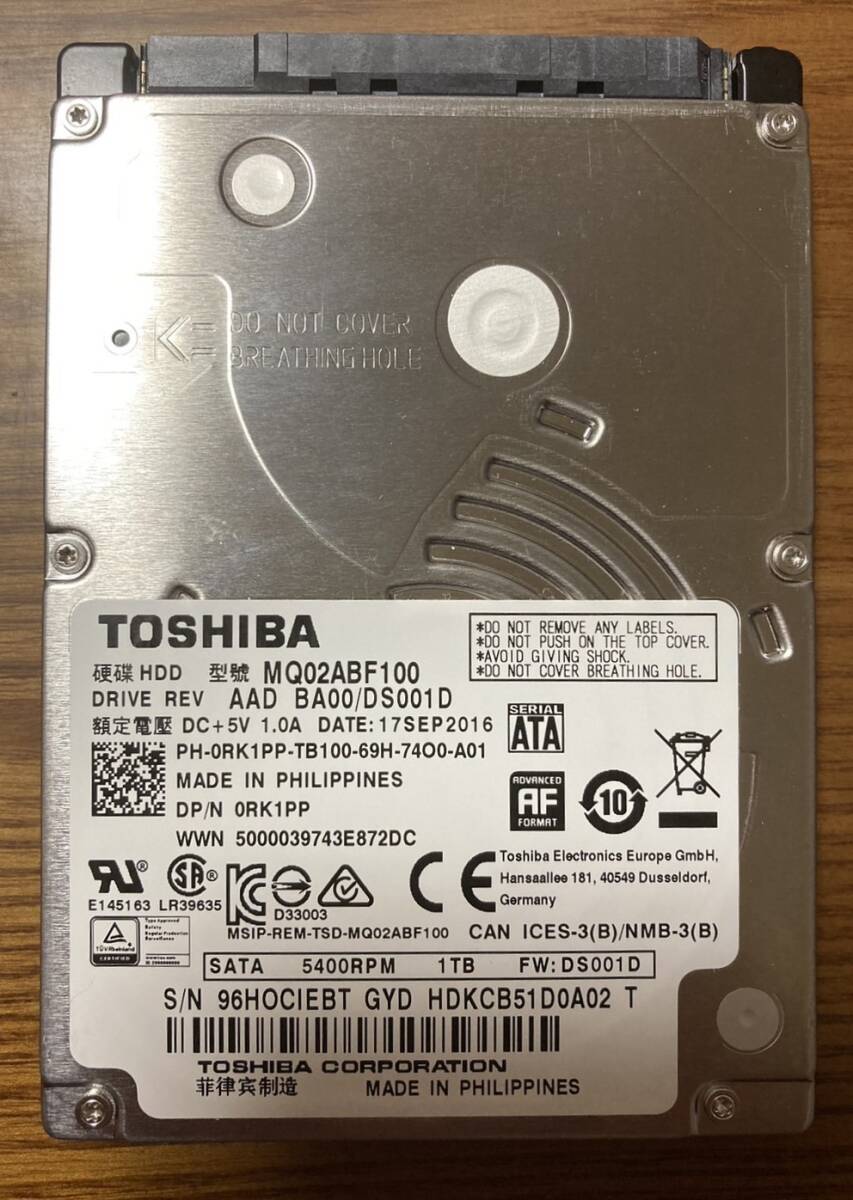 > 【使用時間:小】東芝 Toshiba MQ02ABF100 2.5インチ HDD 1TB(使用時間:380時間未満!)
