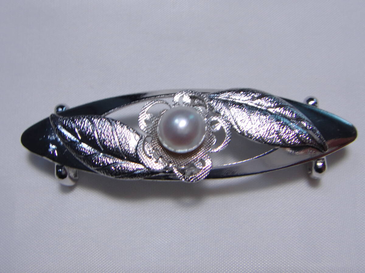 - 帯留め アコヤ真珠 本真珠 本パール 大玉! 約8㎜玉 ツヤテリ玉 良品 花モチーフ ヴィンテージ 和装小物 Y566