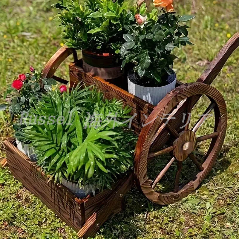 > ガーデンカート フラワーポット 鉢植え プランタースタンド ガーデニング 庭 プランター 花 木製 バルコニー カフェ ベランダ お洒落 4-7