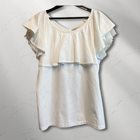 - ROSE BUD フリルレース袖 半袖 ストレッチ プルオーバーブラウス サイズF
