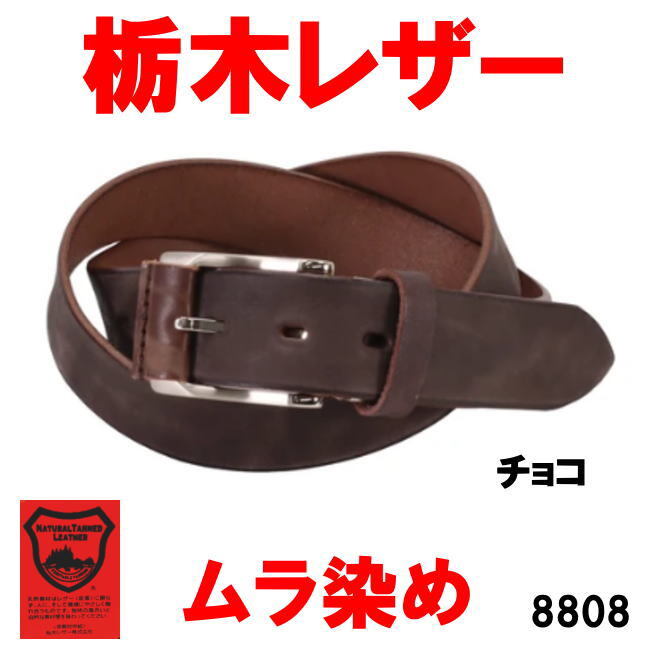 - チョコ 日本製 栃木レザー レザー巻バックル ムラ染め 8088 本革 ベルト オールシーズン