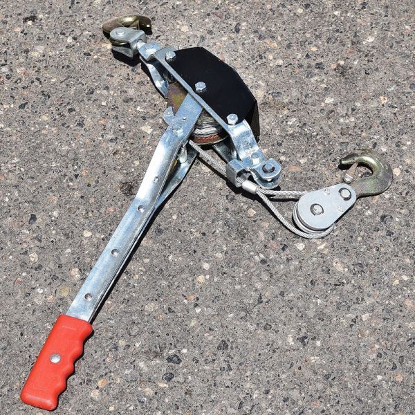 - 【新潟発】Dunkoung レバーウインチ 1500kg パワーウインチ ワイヤー式 手動 ハンドツール 機械移動 牽引 材木 石 運搬 工具 中古 北陸