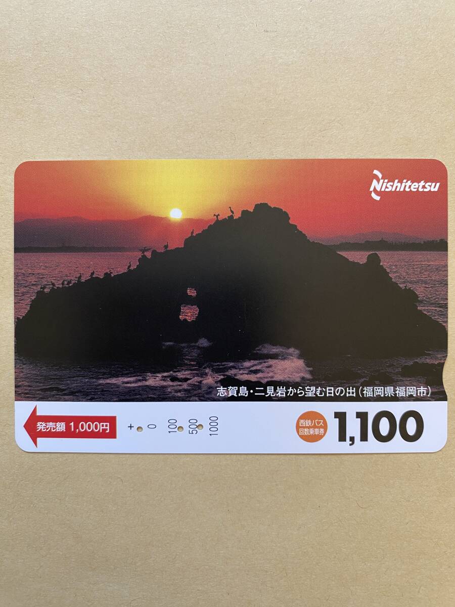 - 【使用済】 バスカード 西鉄バス 志賀島・二見岩から望む日の出 (福岡県福岡市)