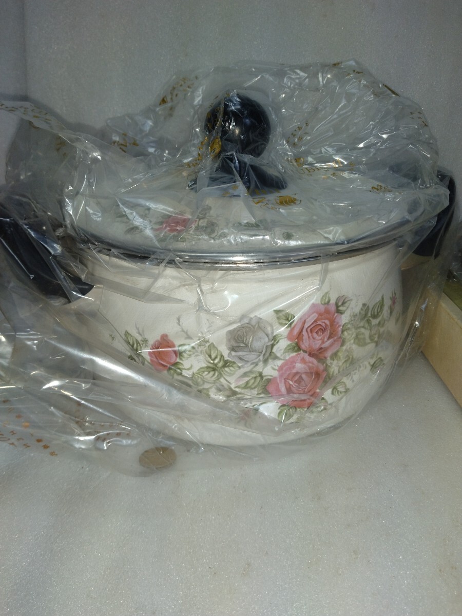 - K3【未使用/保管品】 マルビシ ホーローウェアー ホーロー鍋 深型両手鍋 「ローザ」昭和レトロ 花柄 長期保管