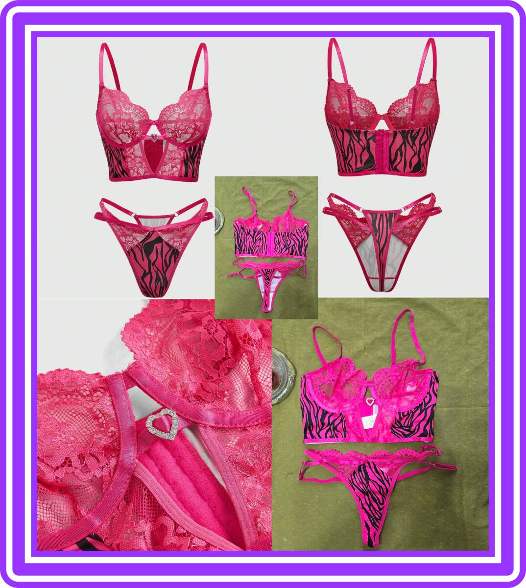 - ★超素敵★セブラ柄★ピンク★アンダーワイヤー★ビスチェ風★ランジェリーセット★ハートラインストーン★Tバック★CH12
