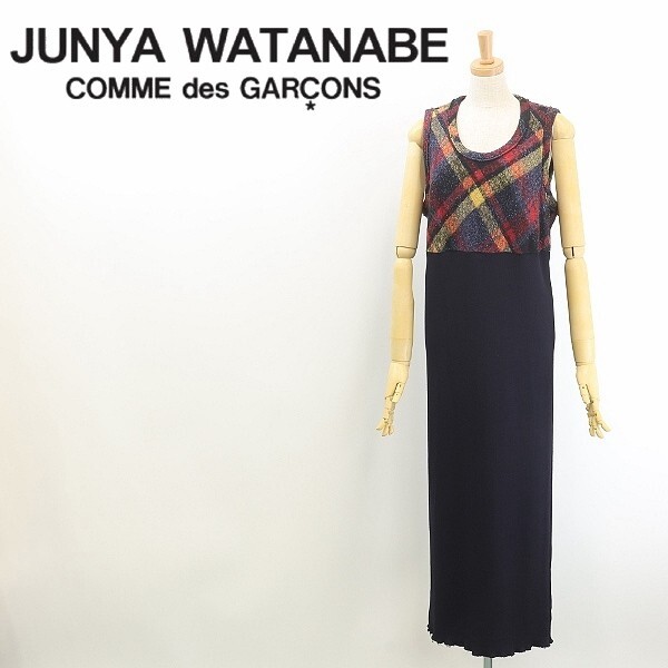 - ◆JUNYAWATANABE COMME des GARCONS ジュンヤワタナベ コムデギャルソン シルク混 チェック柄 切替 ニット ノースリーブ ロング ワンピース