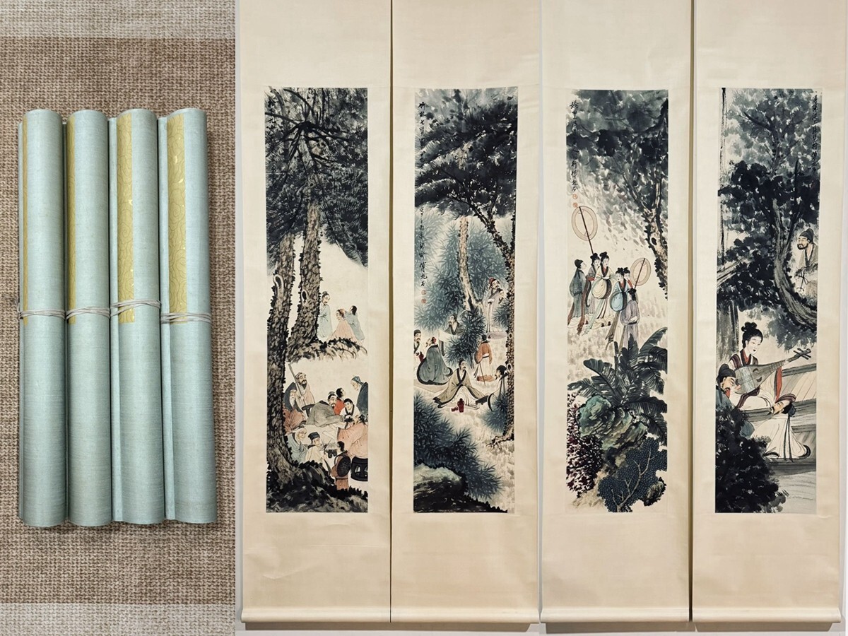 - 中国書画「傅抱石 人物図四條屏」肉筆紙本 掛け軸 墨寶妙品 書画立軸 巻き物 古美術 旧蔵出