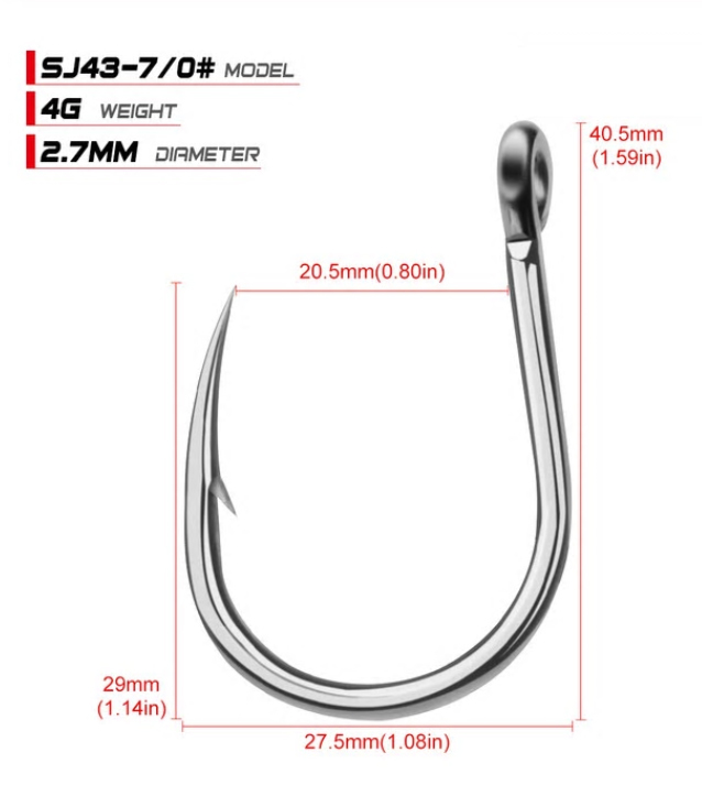 - 大型魚用 ステンレスフック 7/0 10本セット 釣り針 ジギング マグロ クエ アラ アキアジ ブリ シーバス 等