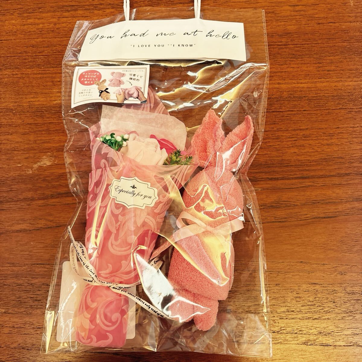 - 【美品】シャボンフラワーセット ウサギタオル ピンク (お花 子ども 発表会 プレゼント)
