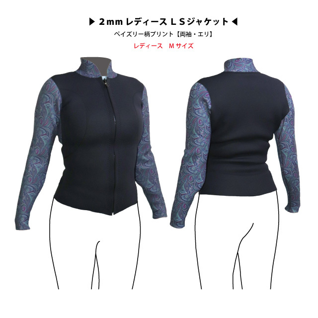> 【新品 即納 レディースM(158~160cm/48~50kg)】ペイズリープリント長袖ジャケット 2mm レディースMサイズ 日本製/夏用ウェットスーツ