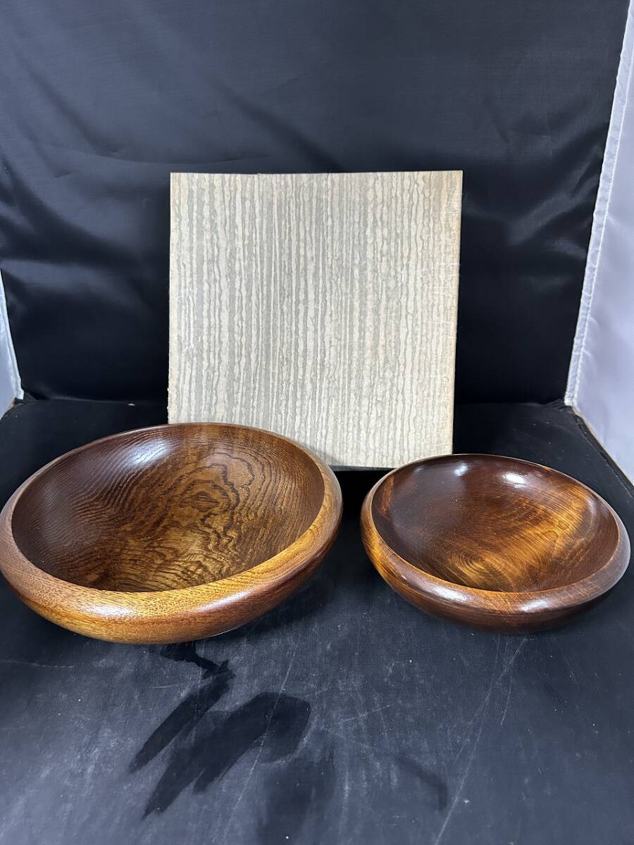 - D 723 菓子器2点セット 菓子鉢 盛鉢 深皿 天然木 茶器茶道具茶菓子入れ 未使用