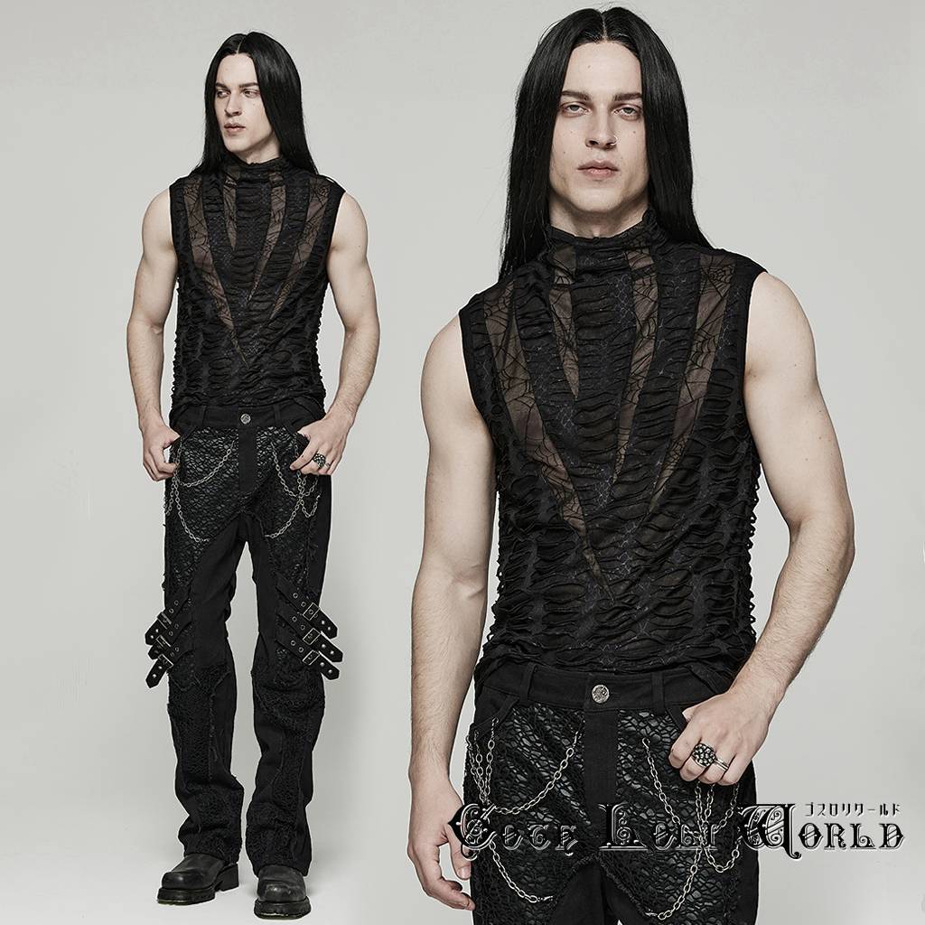 - 即納 WT-777BXM-BK-L-XL ゴシックファッション ダメージライクモックネック カットソー メンズ ゴシック パンク ロック ビジュアル系