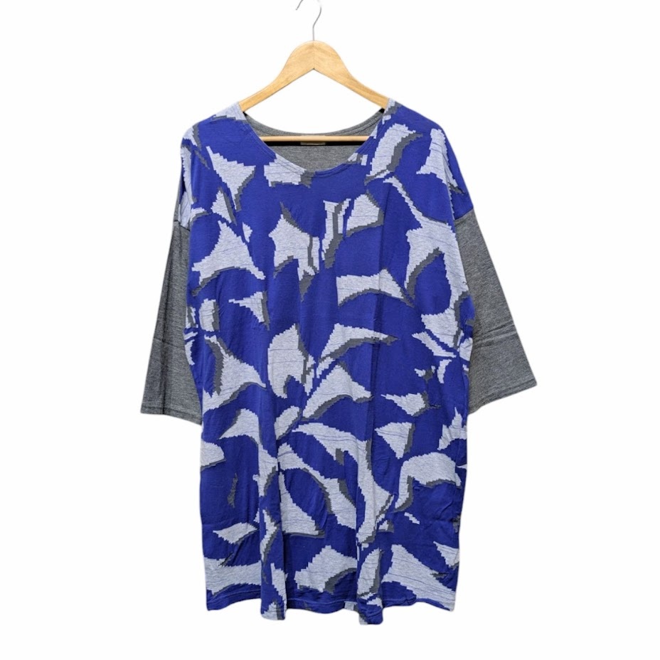 - Plantation プランテーション 七分袖カットソー T ブルー グレー 総柄 PL64JT233