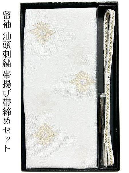 - 留袖用 帯締め帯揚げセット 汕頭 縫取 白 348 丹後ちりめん 帯揚げ 帯締め 扇子 帯揚げ帯締めセット 扇子 礼装用 メール便 送料無料